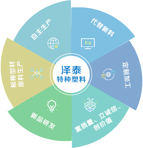 溫州澤泰特種塑料有限公司專業(yè)致力于特種工程塑料產(chǎn)品的擠出、注塑、模壓及機械加工,特別在PEEK(聚醚醚酮)、 PI(聚酰亞胺)行業(yè)有多年的生產(chǎn)加工經(jīng)驗。專業(yè)生產(chǎn)耐磨自潤滑塑料原料、耐磨耐高溫塑料原料、鐵氟龍增強耐磨塑料、碳纖維增強塑料、導電防靜電塑料、PI原料、PPS原料、peek原料、PEI原料、高溫尼龍原料、PEEK板材、PEEK棒材、PEI板材、PPSU棒材、PPS板材、PPS棒材、PPS加纖、PEI加纖、PEEK加纖、防靜電peek原料、防靜電pps原料、耐磨pi顆粒、pps加碳纖維、peek加碳纖維、高溫尼龍等,為不同行業(yè)提供特種工程塑料成品零配件及半成品型材的研發(fā)、設計、生產(chǎn)一體化解決方案。